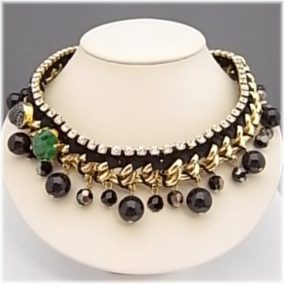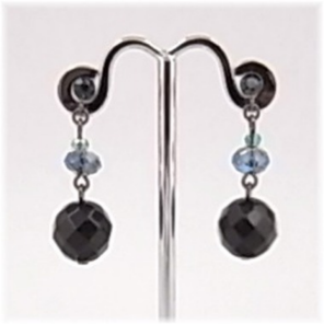 真ちゅう・ガラス・ブラックカルセドニー・ガンメタメッキ